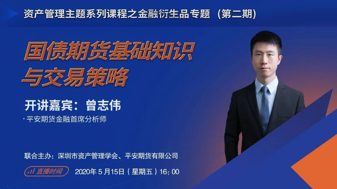 5月15日下午,由深圳市资产管理学会和平安期货联合主办,资产管理主题系列课程第二期圆满举办。主讲人曾志伟先生,从国债期货管理的专业角度出发,结合自己多年在股市、债市、商品的中长期趋势分析经验,讲述国债期货的基础知识和交易策略。直播间听众反响热烈,积极交流国债期货相关知识。