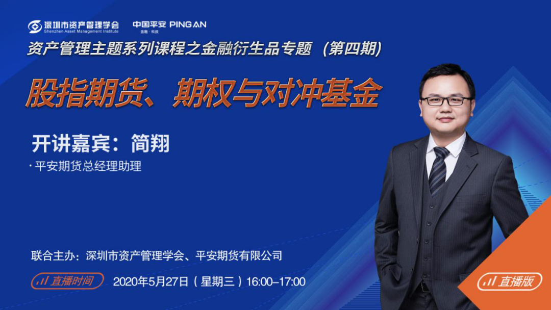 5月27日下午,由深圳市资产管理学会和平安期货联合主办,主讲人平安期货总经理助理—简翔先生,从资产管理专业角度出发,结合自己多年期货研究和投资经验,为我们分享股指期货在对冲基金中的应用。本次讲座深入分析了对冲基金的国内国际发展状况,给听众提供的专业的股指期货在对冲基金中的应用知识和实际交易经验。