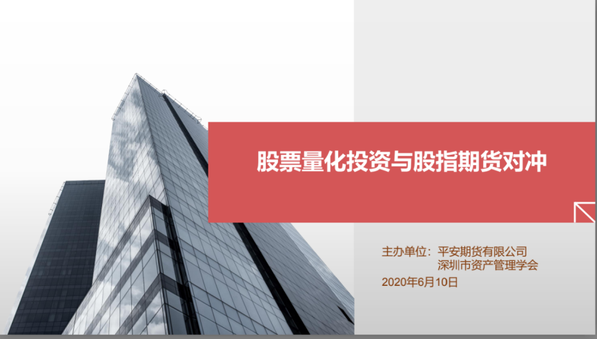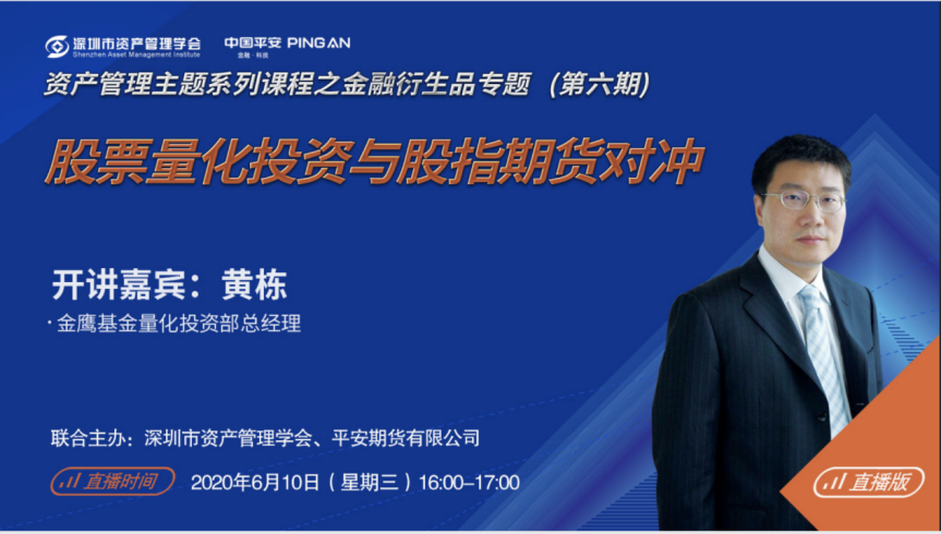 6月10日下午,由深圳市资产管理学会和平安期货联合主办,主讲人金鹰基金量化投资部总经理—黄栋,以量化投资理念为切入点,结合国内量化投资的现状,为我们分享了量化投资的策略及股指期货量化对冲的应用。