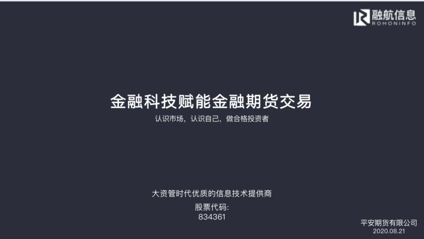 8月21日下午,由深圳市资产管理学会和平安期货联合主办,融航信息技术机构部总经理——田蓉女士,拥有丰富的境内外期货业务、国际对冲基金及跨国贸易集团公司服务经验和行业资源,以独特的视角向我们介绍了大资管时代,金融科技如何赋能金融化期货交易,科技与金融的完美结合,会为我们带来不一样的市场交易体验。