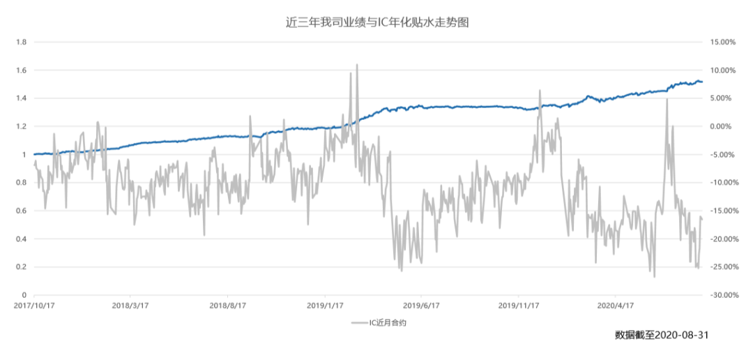 3.IC合约贴水幅度与市场情绪相关度高,贴水幅度减小为净值带来浮亏,此时大盘更可能上涨,正敞口带来的收益与浮亏对冲,使得产品依旧保持高夏普率。