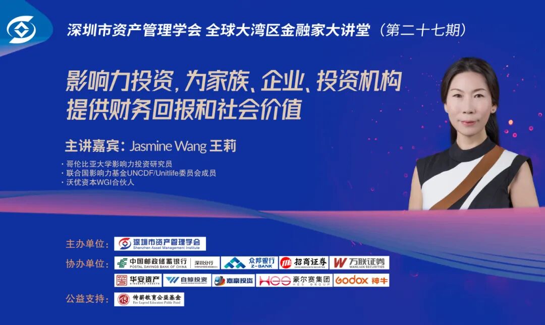 2025年2月22日晚,由深圳市资产管理学会主办的全球大湾区金融家大讲堂第27期暨社会公益大讲堂活动圆满结束,直播间共计5000余人次观看。本期深圳市资产管理学会邀请了哥伦比亚大学影响力投资研究员王莉老师,为大家分享“影响力投资,为家族、企业、投资机构提供财务回报和社会价值”主题讲座。